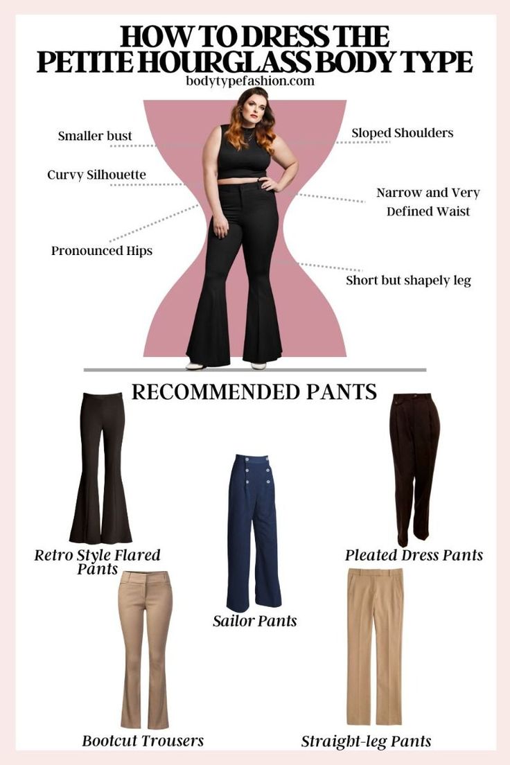 What to Wear: V-necklines elongate the upper body and create a slimming effect. Flared pants or A-line skirts add proportion to the lower half, making the entire body look balanced. Wrap dresses are also good because they highlight the bust and create a defined waistline.