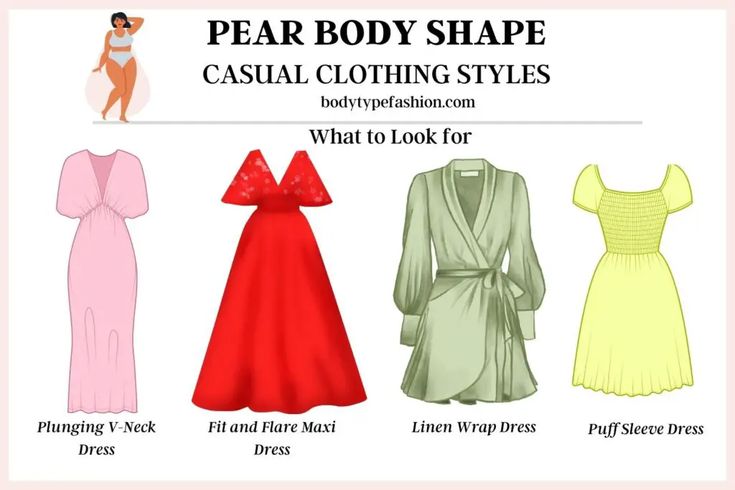 For pear-shaped bodies, A-line dresses, fit-and-flare styles, and high-waisted pants are universally flattering. Look for tops with embellishments, patterns, or bright colors to shift attention to your upper body.